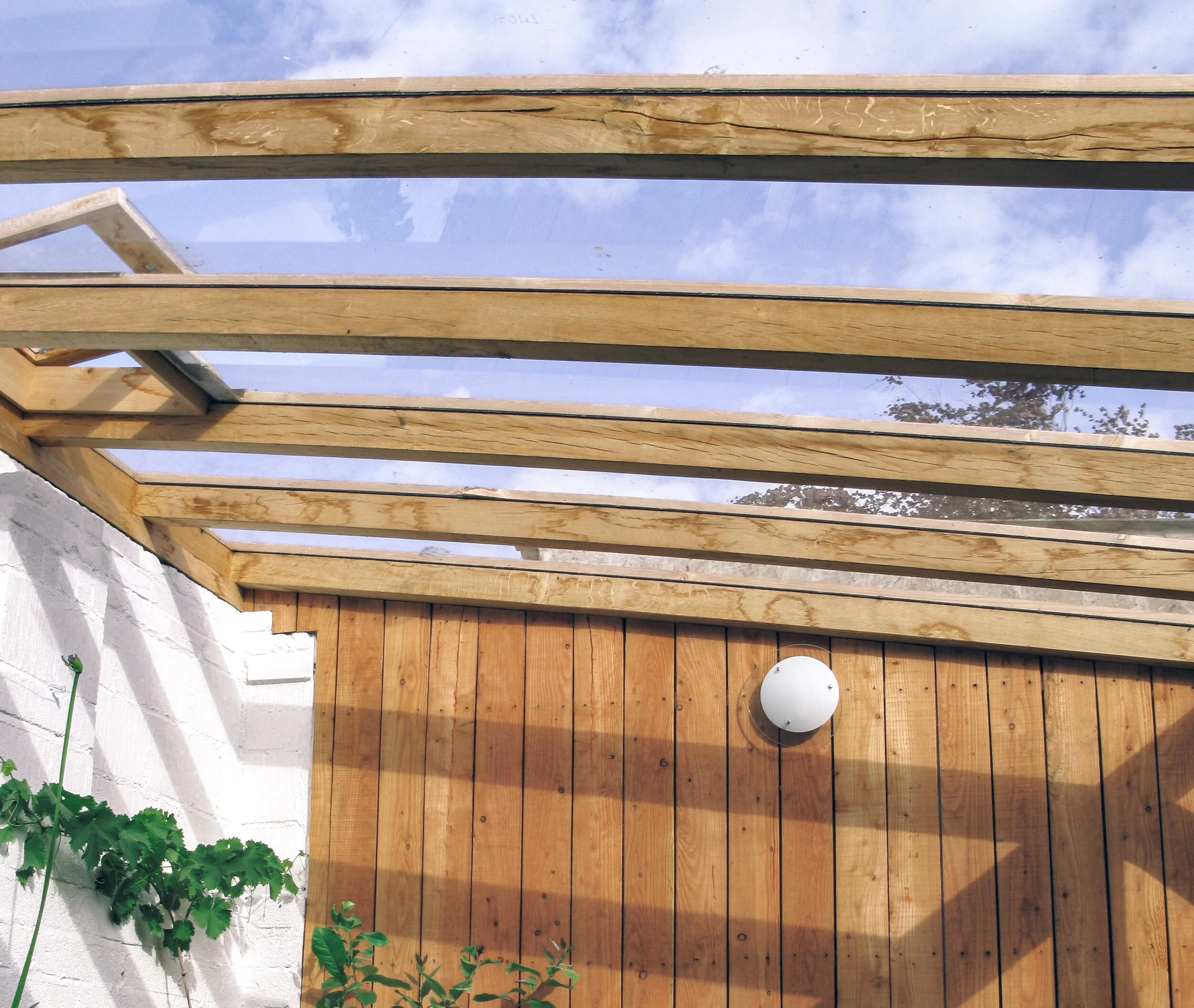 Green oak frame, Cedar joinery, cover boards and cladding.
